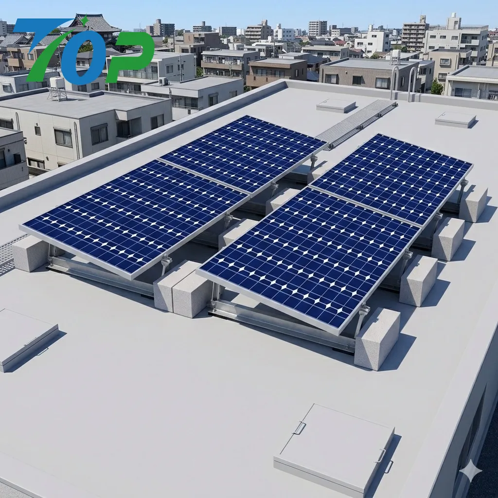 自重式構造でアンカー固定不要、既存建物の防水保証や資産価値を維持可能。